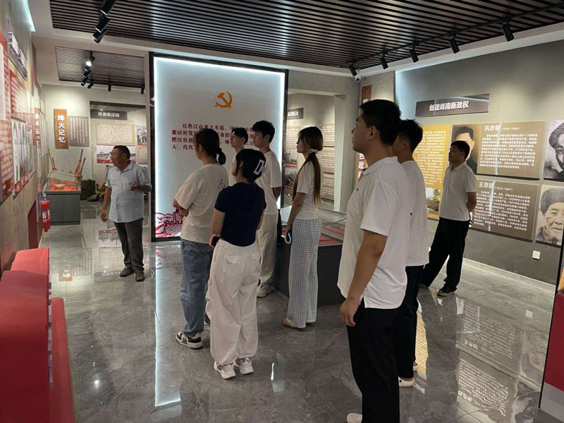 隨后,鎮(zhèn)文化書院“烽火紅印”志愿者丁繼海同志帶領(lǐng)新入學(xué)大學(xué)生們前往黃丘山套紅色記憶館開展紅色教育。通過(guò)參觀珍貴史料、聆聽革命故事,學(xué)子們深刻感悟革命先輩的奮斗精神,進(jìn)一步堅(jiān)定了傳承紅色基因、勇?lián)鷷r(shí)代使命的理想信念。